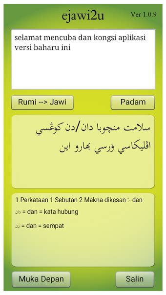 Ejawi transliteration software online is an input method editor which allows users to enter roman malay text and it will transliterate to jawi script based on arabic alphabet character. Ejawi2u merupakan aplikasi penterjemah perkataan rumi kepada jawi tanpa talian internet (offline). Android 4.0+ (ice cream sandwich, api 14) signature:.